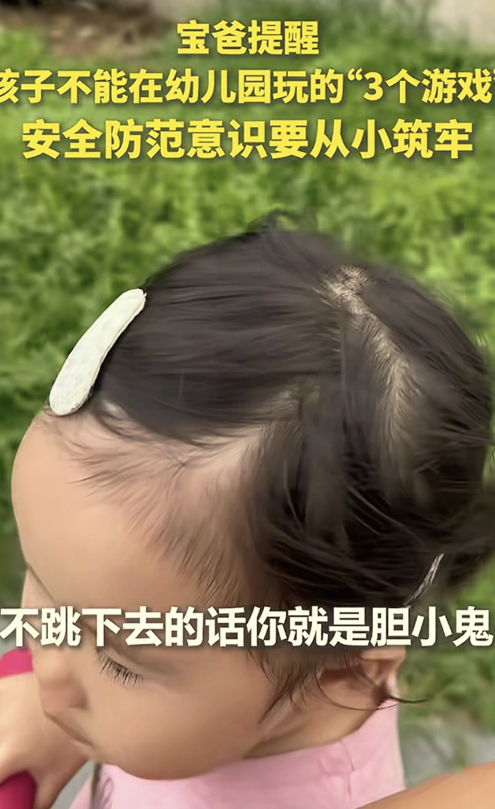 比如说:你敢不敢跳,你不敢跳就是胆小鬼。站在高高的滑梯上向下跳,这其实是非常危险的一件事情。父母也要叮嘱孩子,这种游戏也不能玩,而且要告诉孩子我非常勇敢不需要向你证明。这样可以避免孩子受伤。